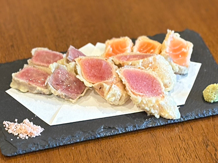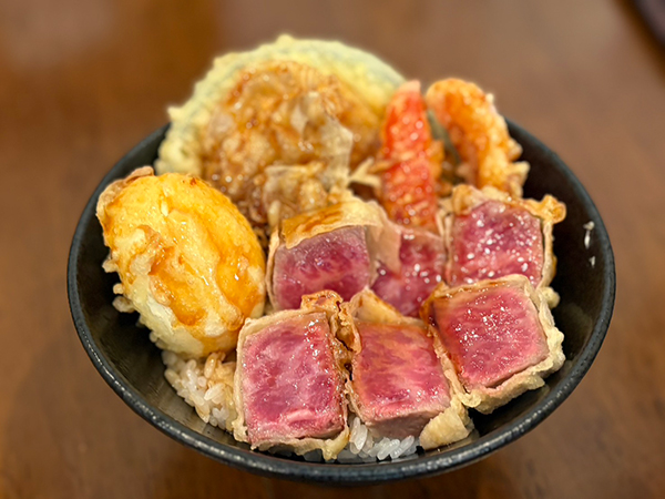 九州産黒毛和牛はレア天ぷらで!